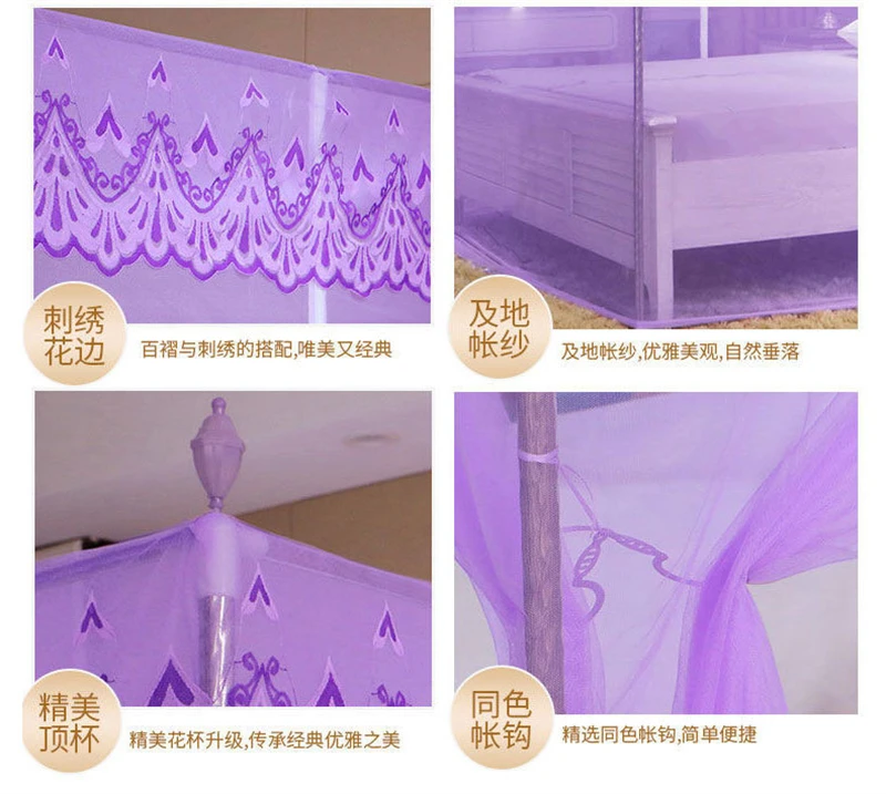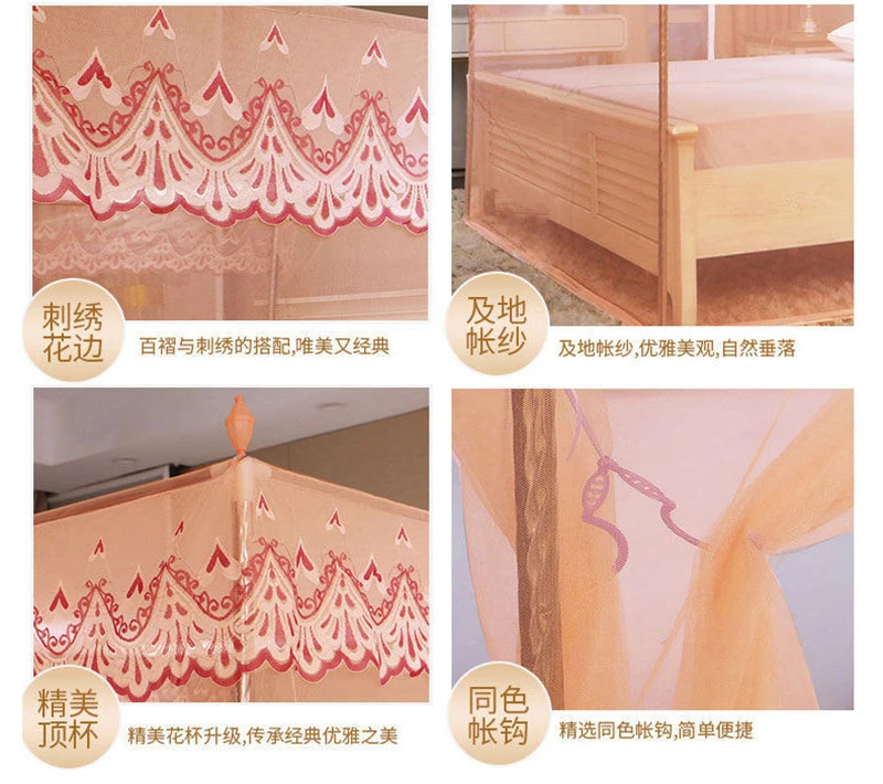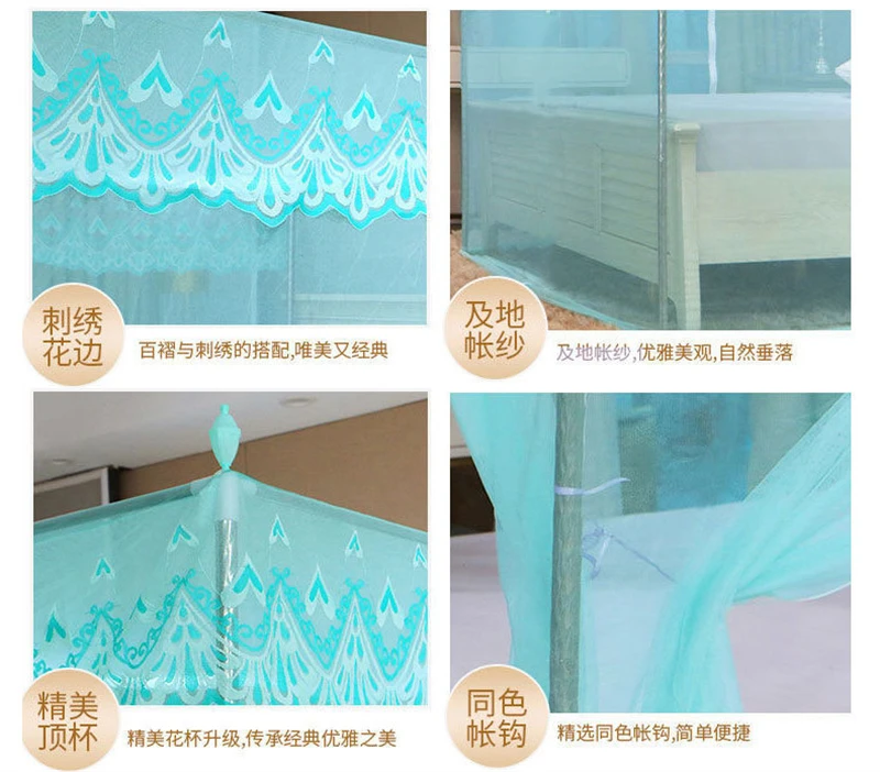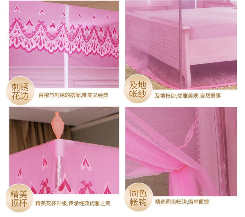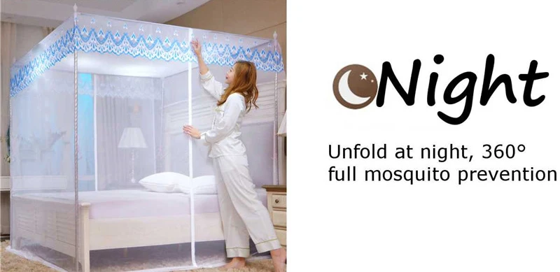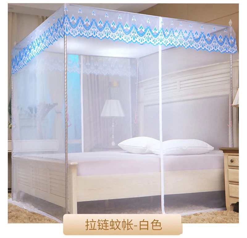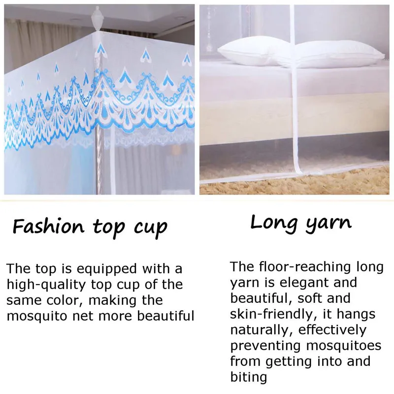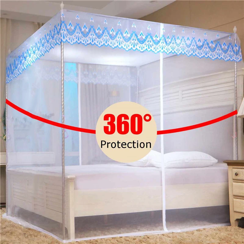 Romantic Square Lace Mosquito Net – Princess Canopy with Stainless Steel Frame for Single, Double & Queen Beds